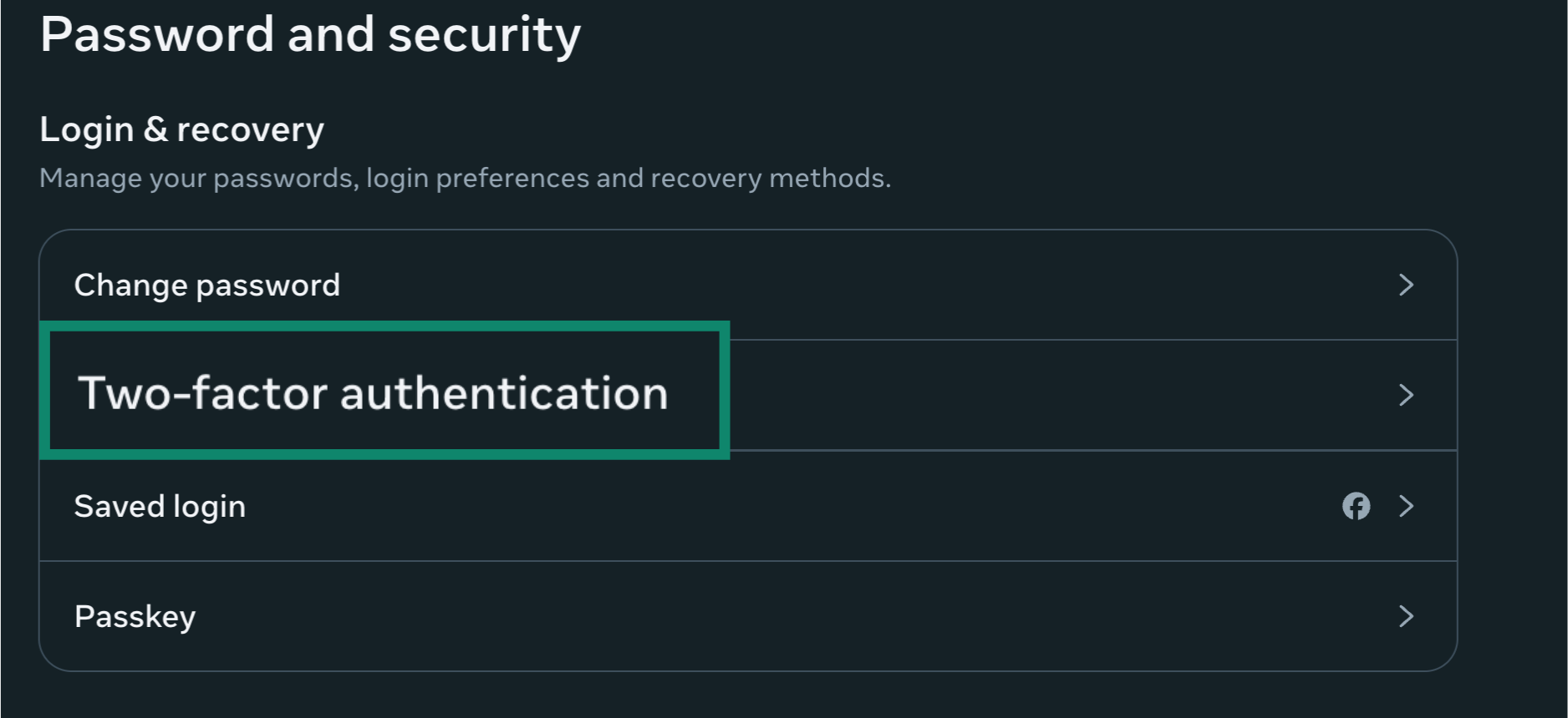 Facebook offers various 2FA options, which you can set up by following the steps below: