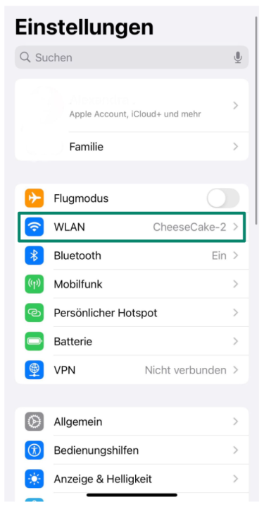 1. Öffnen Sie die Einstellungen und tippen auf Wi-Fi.