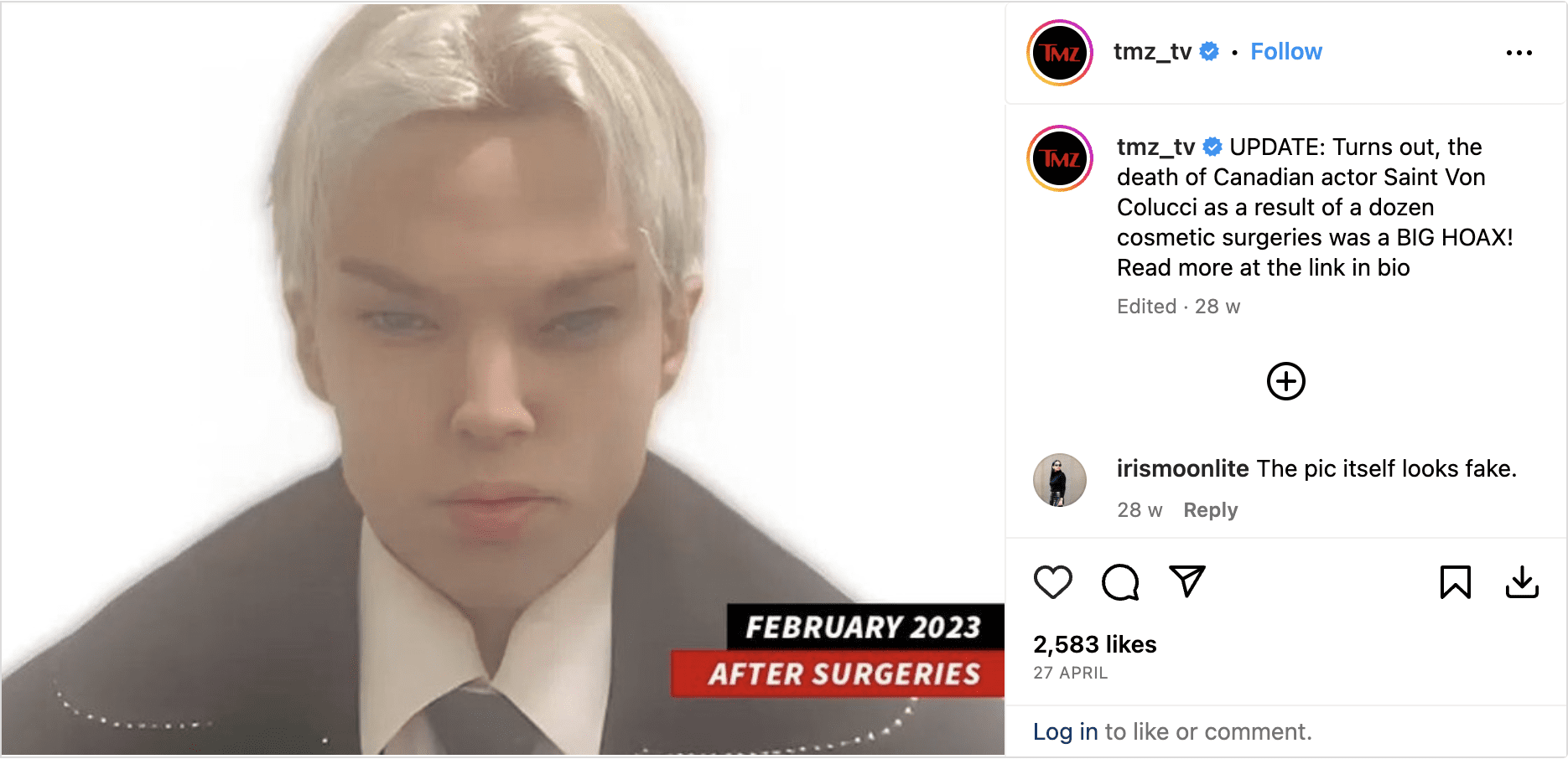 Ein schockierendes Beispiel war die Geschichte von Saint Von Colucci, einem vermeintlichen Schauspieler und Sänger, der angeblich starb, nachdem er sich mehreren Operationen unterzogen hatte, um wie Jimin von BTS auszusehen. Die Medien weltweit berichteten über sein angebliches Ableben, seine 200.000 USD teuren Operationen und seine Rolle in einem koreanischen Drama. Doch es gab Von Colucci nie. Beweise deuten darauf hin, dass es sich bei ihm um einen von einer künstlichen Intelligenz erzeugten Schwindel handelt, mit dem die Medien weltweit getäuscht wurden.