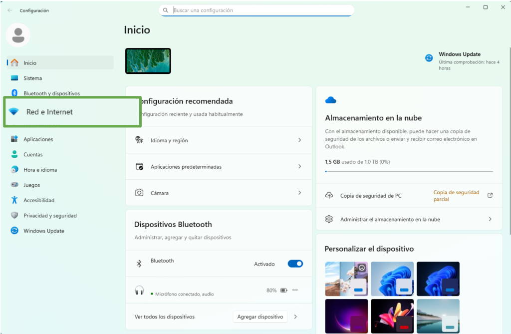 1. Pulsa Windows y la tecla I al mismo tiempo para acceder a la Configuración. Luego haz clic en Red e Internet.