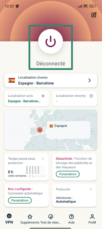 5. Appuyez sur le bouton Connexion auto pour vous connecter à un serveur et masquer votre adresse IP.
