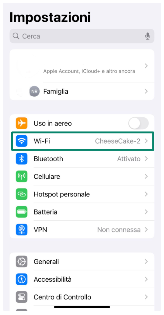 - Apri il menu Impostazioni del tuo iPhone e vai alla sezione Wi-Fi.