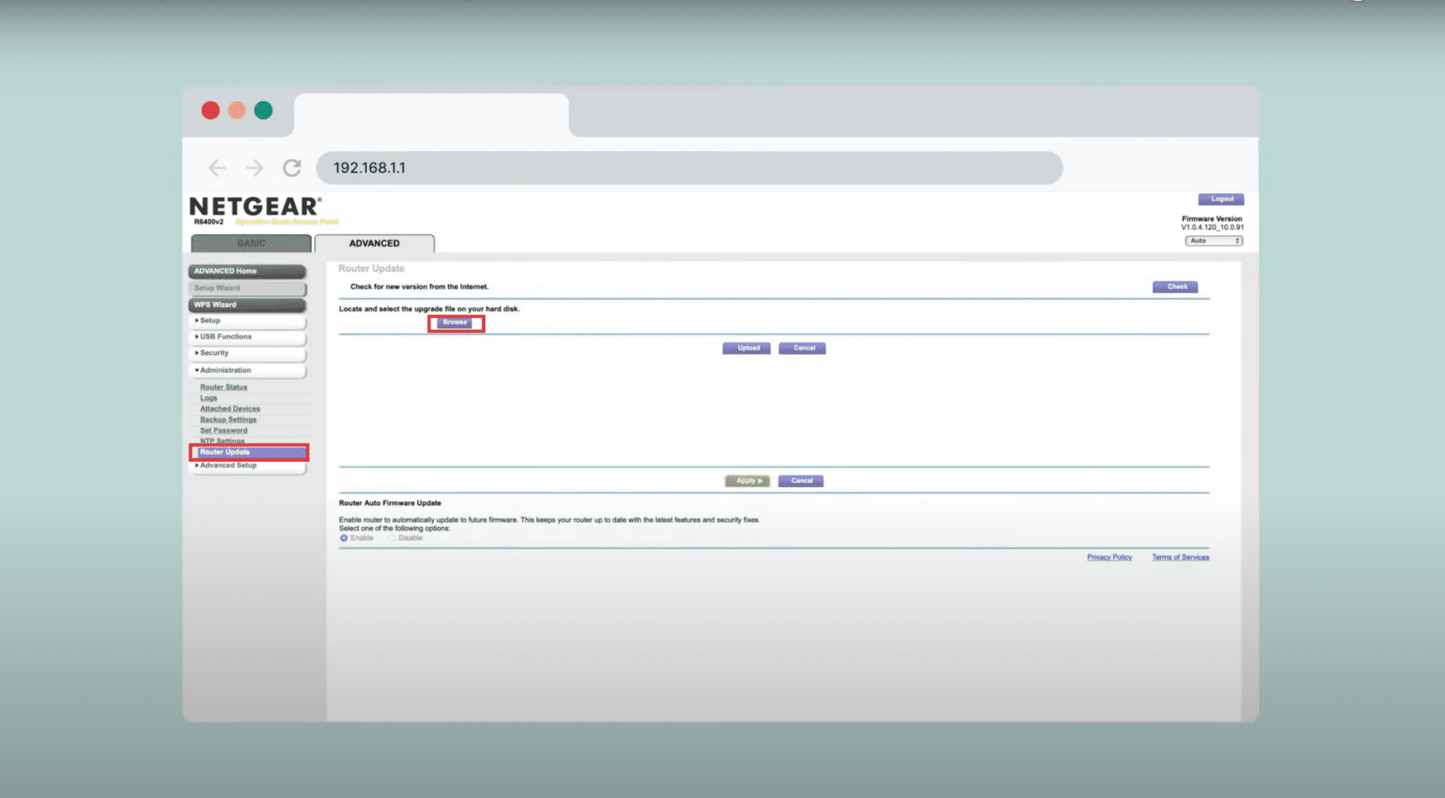 Ad esempio, sui router Netgear, devi selezionare il pulsante Browse e caricare il firmware VPN fornito dal tuo provider.