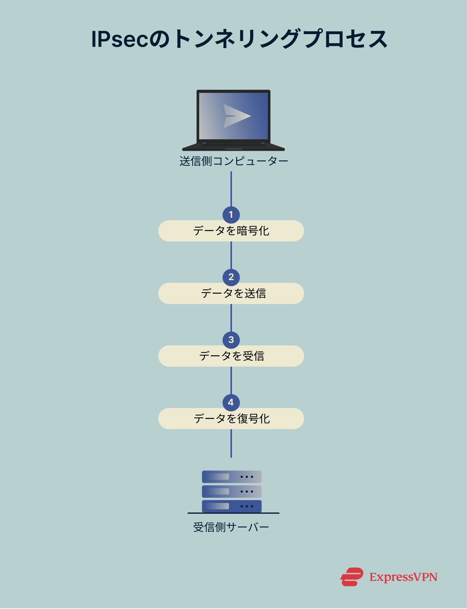 IPsecの暗号化プロセスは5つのステップに分けられます。