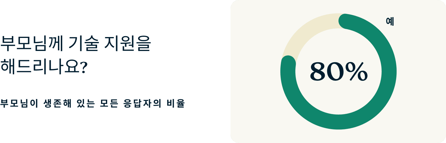 • 다섯 중 네 명의 성인이 부모님의 기술 지원을 돕고 있습니다