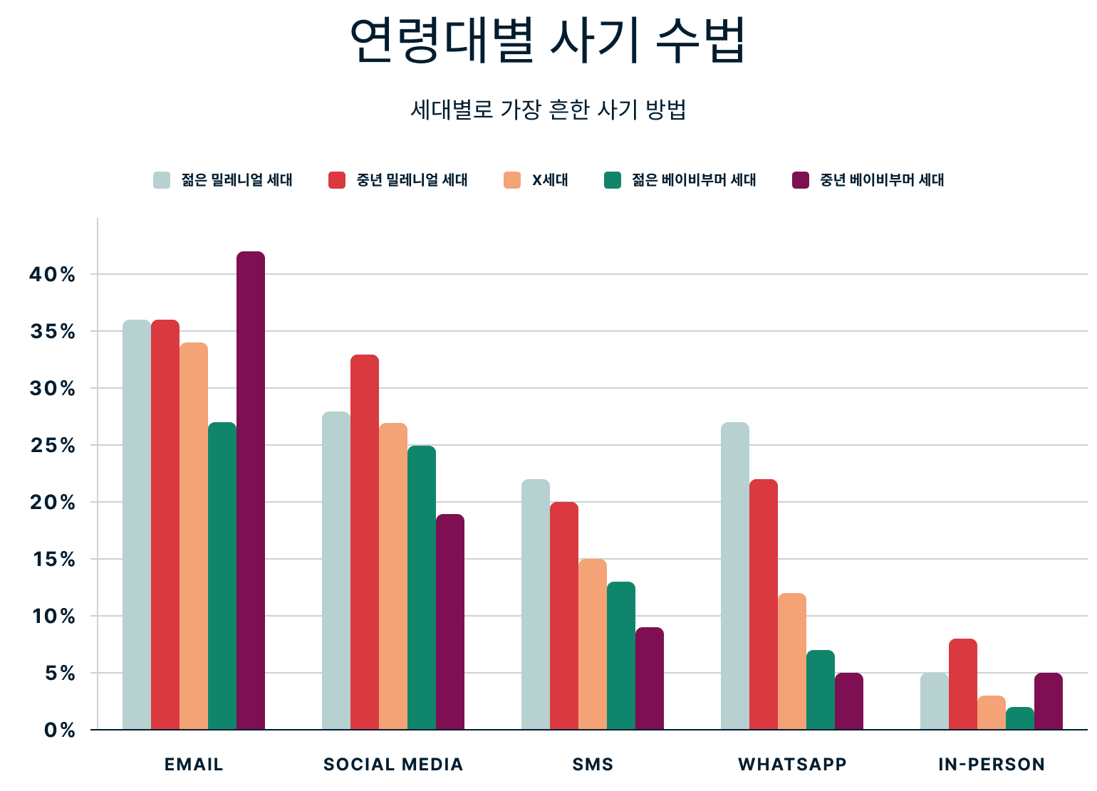 소셜 미디어도 사기 행위를 위한 번식지가 되어가고 있으며, 특히 고령자가 Facebook과 같은 플랫폼에서 더 활발하게 활동하게 되면서 더욱 그렇습니다. 설문조사에 따르면, X세대 사기 피해자 중 27%, 젊은 베이비부머 사기 피해자 중 25%, 나이 든 베이비부머 사기 피해자 중 19%가 소셜 미디어 사기에 당한 적이 있습니다.