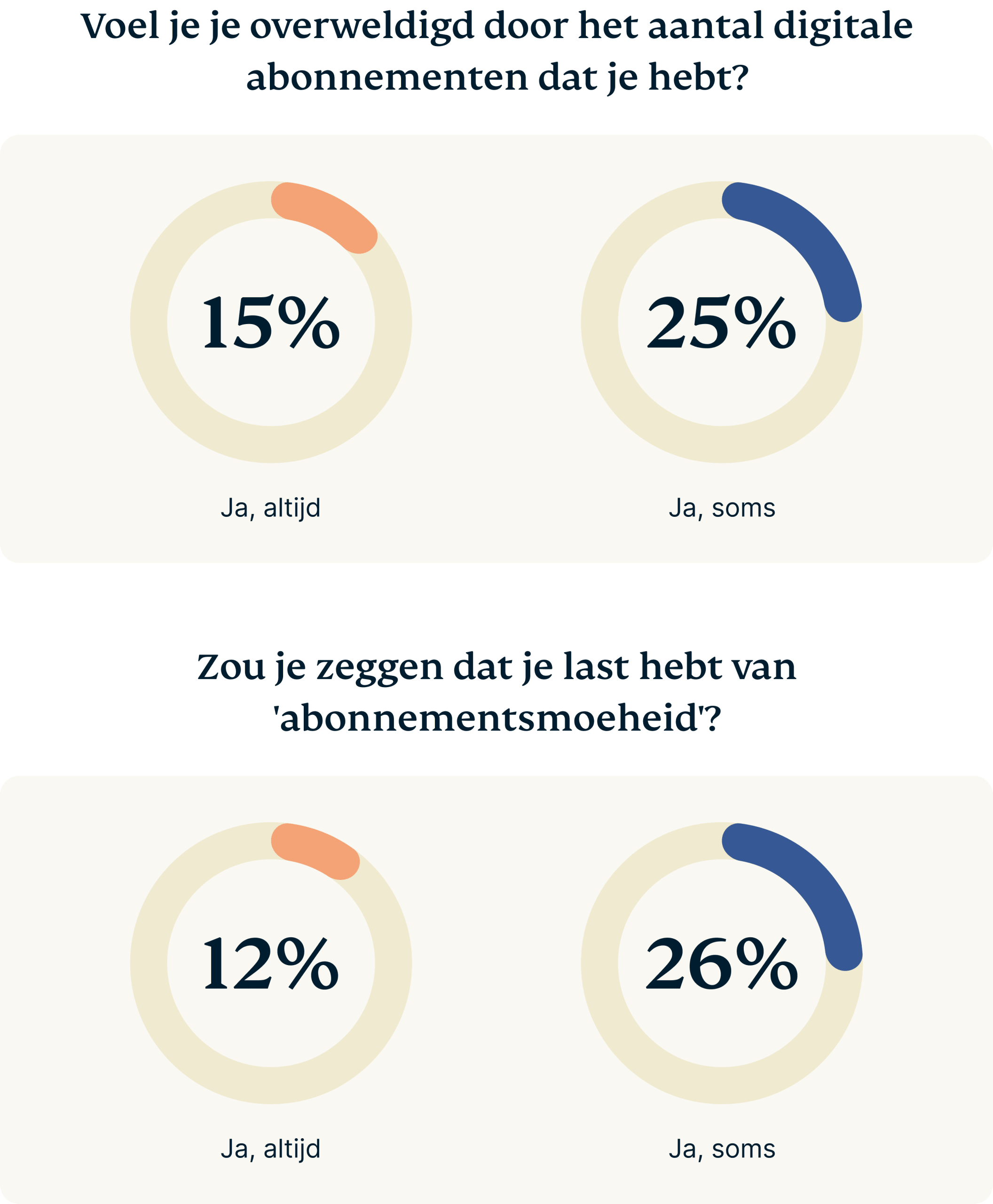 Het gaat echter niet alleen om de kosten of de apparaten die we gebruiken die bijdragen aan abonnementsmoeheid. Het is ook de mentale belasting die gepaard gaat met het beheren van zoveel diensten. Volgens ons onderzoek gaf 40% van de respondenten toe zich overweldigd te voelen door het aantal digitale abonnementen dat ze beheren.