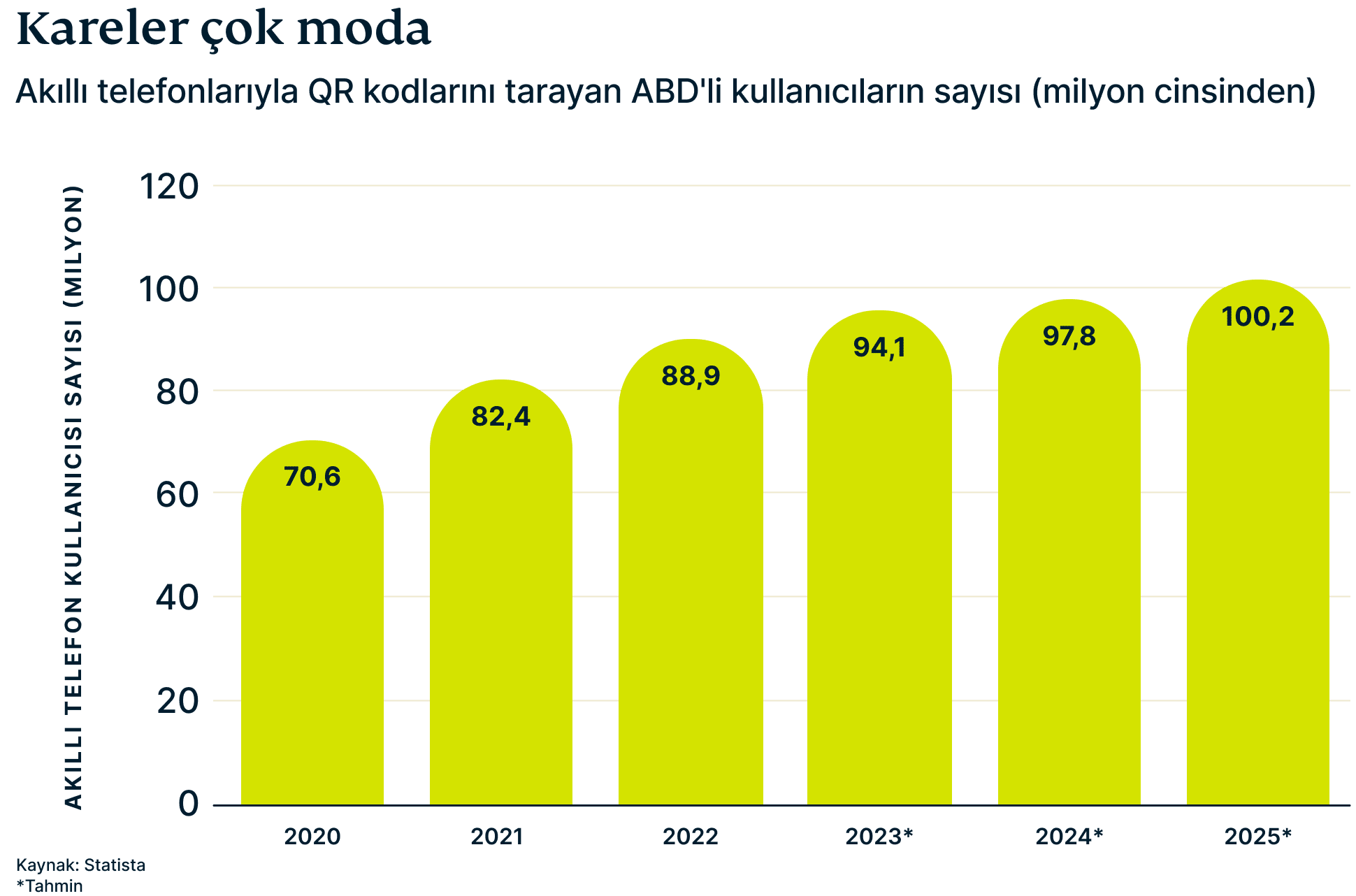 Statista tarafından yakın zamanda gerçekleştirilen bir araştırmaya göre, QR kodlarını tarayan telefon kullanıcılarının oranı son iki yılda %26 arttı. Bu oran, toplumun bu teknolojiyi ne kadar benimsediğini tekrar teyit etti.