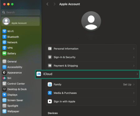- Click on your name at the top of the sidebar (if it isn’t there, you’ll need to click Sign In and enter your Apple Account details). Then click on iCloud.