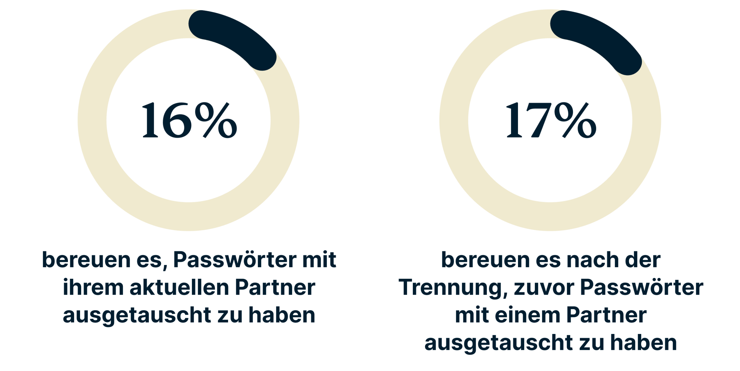 Die gemeinsame Nutzung von Passwörtern ist in Beziehungen weit verbreitet: 45 % der Deutschen geben an, ein Passwort mit ihrem Partner geteilt zu haben.