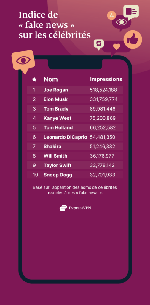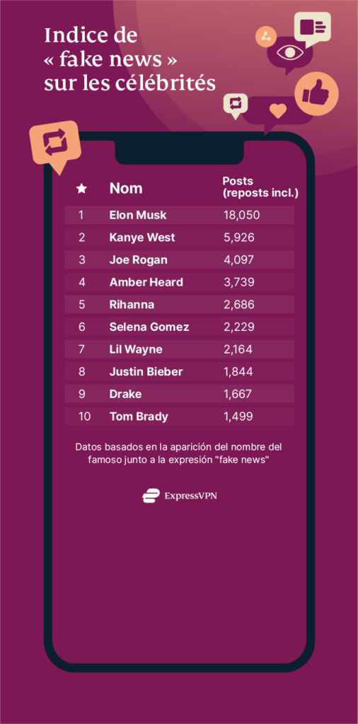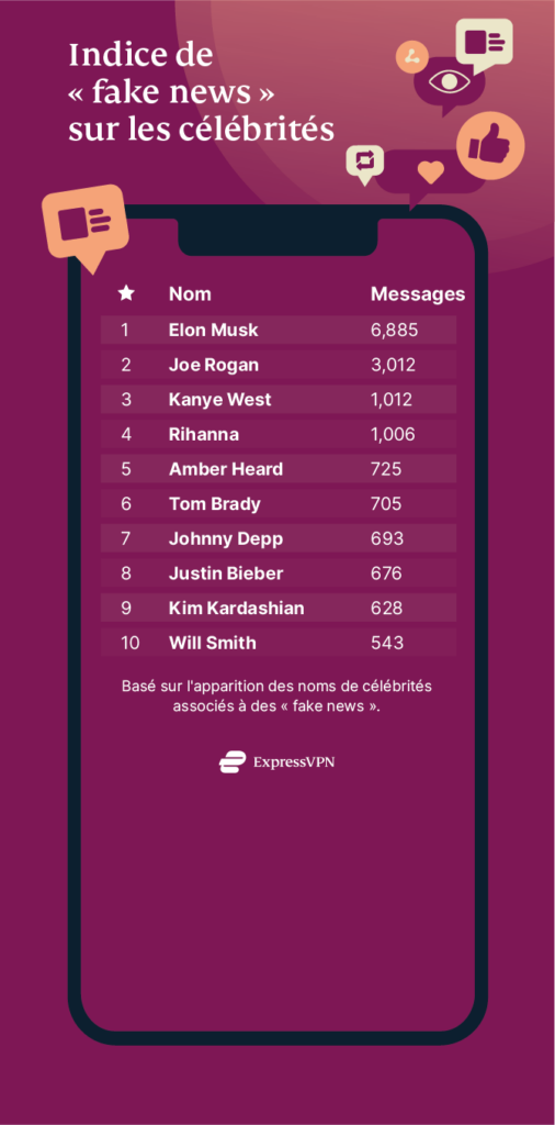 Le classement des 20 célébrités les plus touchées par les « fake news »