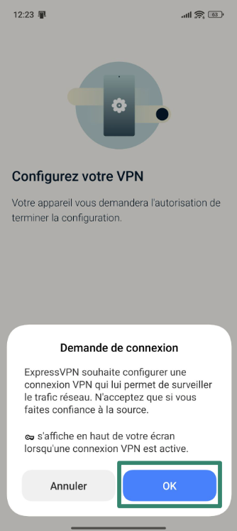 4. Appuyez sur Autoriser quand on vous demande d’autoriser ExpressVPN à ajouter des configurations VPN.