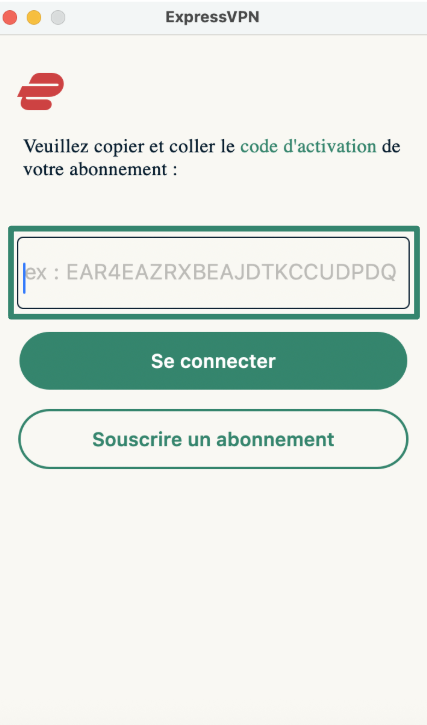 3. Lancez ExpressVPN une fois l’appli installée et connectez-vous avec votre code d’activation.