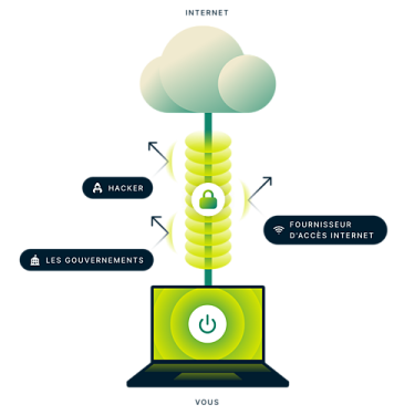 Les données dans le tunnel sont également chiffrées de manière à ce que seul le destinataire puisse les déchiffrer. Cela permet de garder les contenus de votre trafic internet complètement masqués, même vis à vis de votre fournisseur d'accès internet.