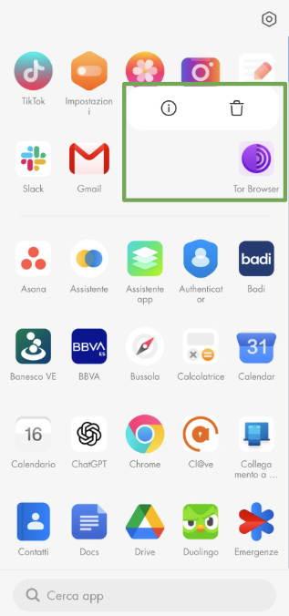 - Tocca e tieni premuta l'icona finché non appare un menu.