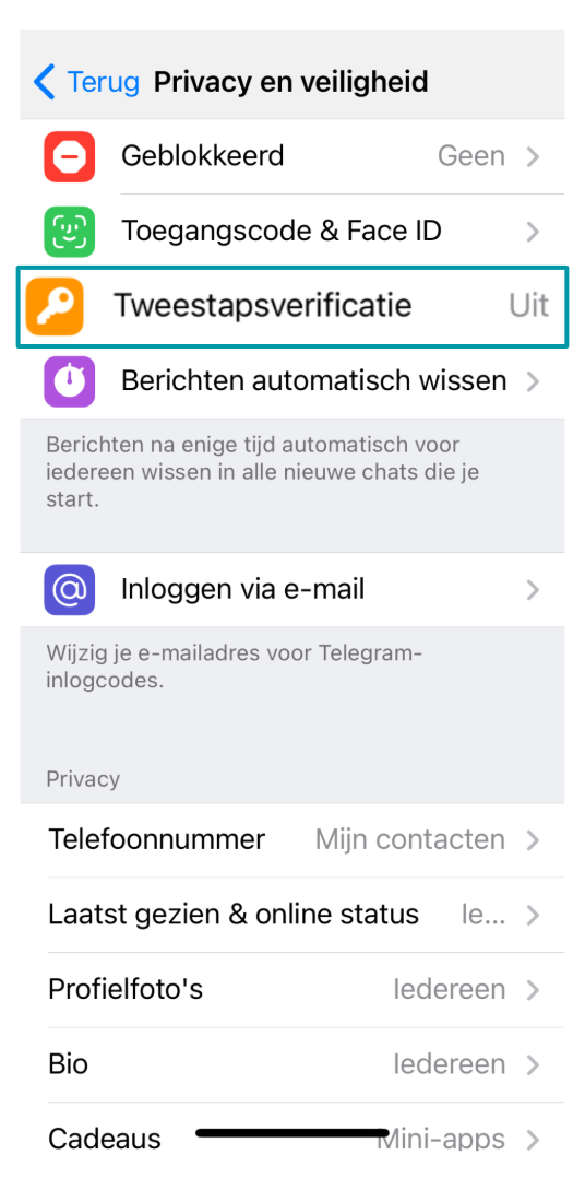 Tweestapsverificatie voegt een extra beveiligingslaag toe aan je Telegram-account. Zelfs als iemand je wachtwoord weet, kan diegene niet inloggen zonder een tweede code.