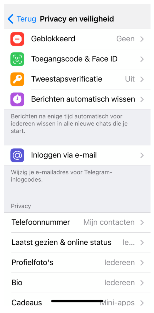 Met Telegram kun je bepalen wie je persoonlijke gegevens kan zien.