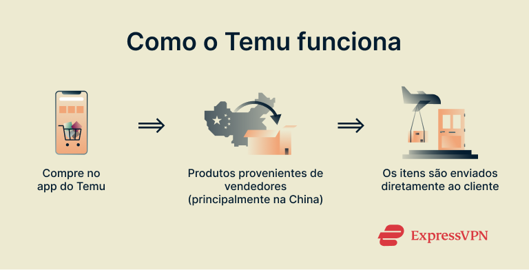 O Temu não é uma loja online comum. Ela não mantém estoque próprio nem envia produtos de um grande depósito. Em vez disso, conecta você a diversos vendedores terceirizados que anunciam seus produtos na plataforma. Quando você compra algo, o vendedor envia diretamente para você.